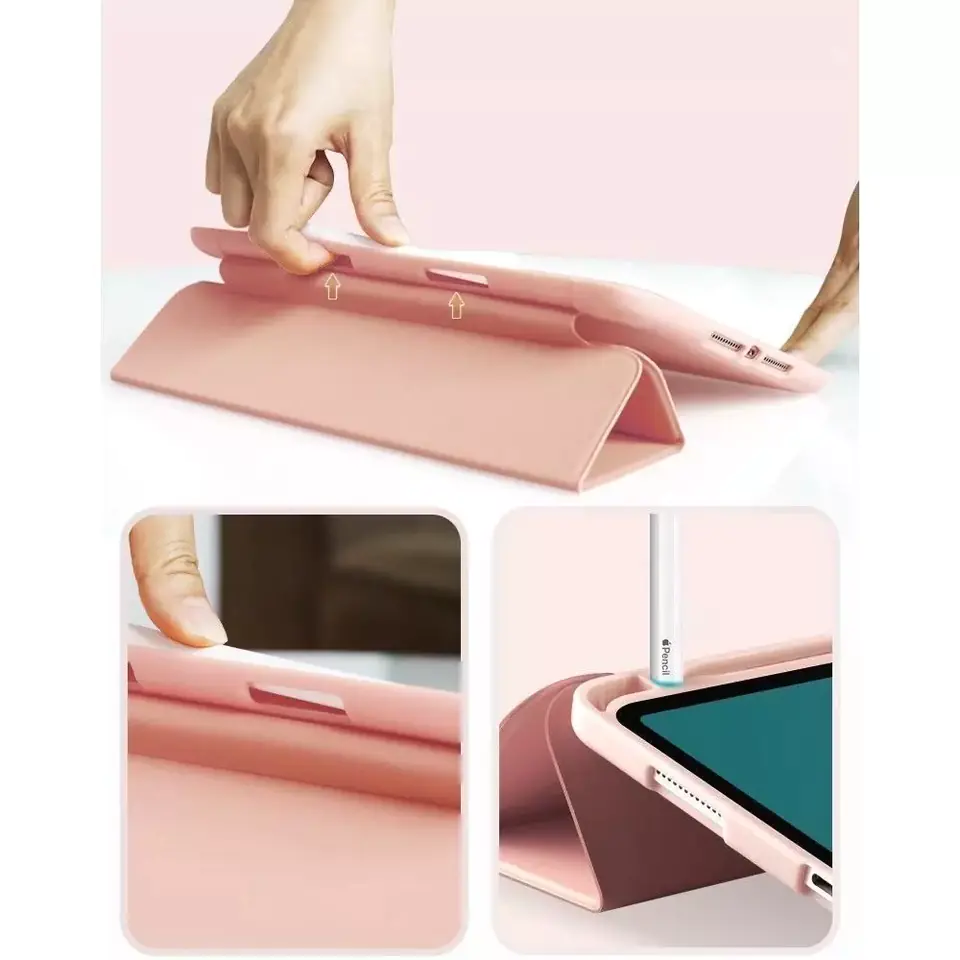 Thanks to the folding cover on the front side of the cover, we gain protection of the display, and thanks to the technology of waking up and sleeping the device, we can ensure a slightly longer life of its battery. The case can also be used as a stand for more convenient use of the device.