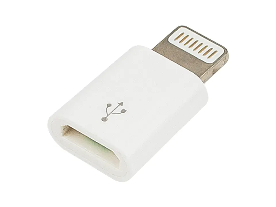 Adapter for transferring data or charging Apple devices. Micro USB socket (B) - Lightning plug 8 pin