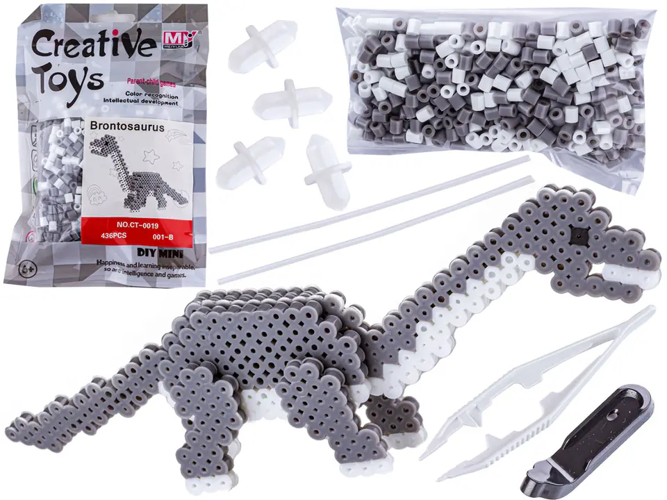 Colorful ironing beads are a great idea for creative play - they effectively take up for many long hours and trigger an absolute volcano of creative ideas! The set allows you to arrange a dinosaur - brontosaurus 3D.