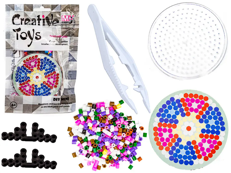 This is a toy to build yourself. The set consists of many colorful, plastic beads and a template with a specific pattern. A super set will provide every child with a lot of fun.