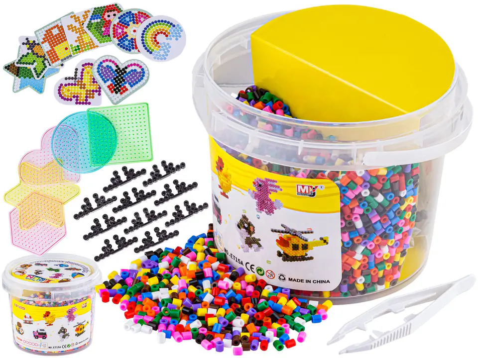 | Produkt odpowiedni dla: | Specyfikacja:Produkt odpowiedni dla: dzieci powyżej 6 roku życiaIlość elementów:5000Wymiary wiaderka: średnica pokrywy 16cm, wysokość 13,5cmPrzekrój koralika:5mmSzablony:różowe serduszko i sześciokąt, niebieskie kółko, żółta gwiazdka, zielony kwadrat. |