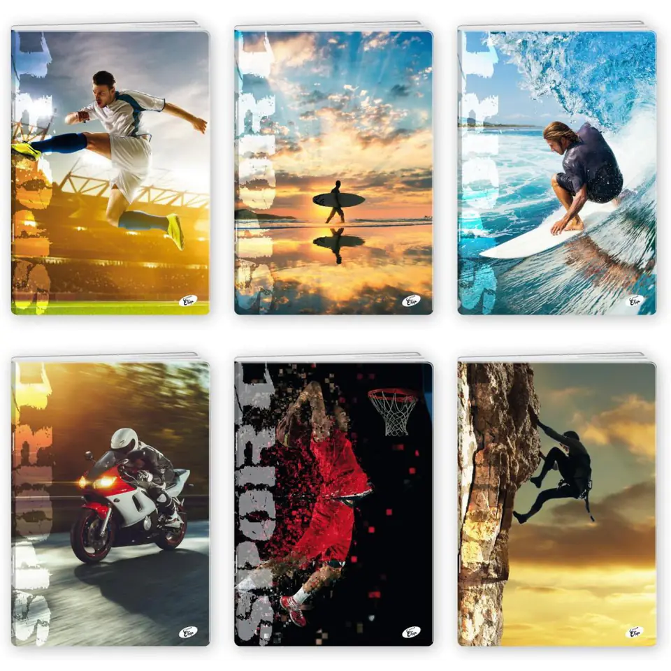 Notebooks from the SPORT collection are dynamic shots, highlighted by selectively varnished elements. Training and adrenaline enthusiasts will certainly choose this series of notebooks. The paperback notebook in A5 format contains 32 pages per line. Cover weight 300g/m2. Matte cover with varnished elements. Rounded corners. Sheet weight: 80g/m2. The notebook has a lesson plan, a margin, as well as a space for a signature.