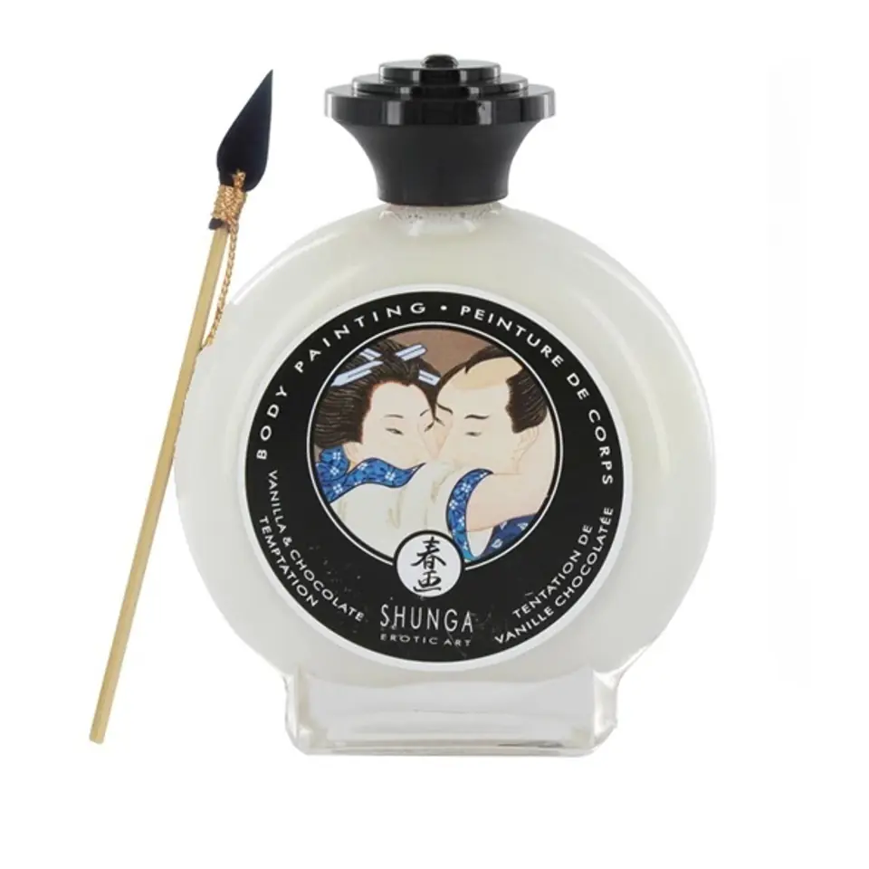 Jadalna farbka do ciała Shunga wanilia i biała czekolada podziała na zmysły i obudzi w Was nowe pokłady kreatywności Bodypaint Vanilla and Chocolate może być nietuzinkowym elementem na grę wstępną, ale nie tylko. Kosmetyk pozwala rysować na ciele i co więcej, nieziemsko pachnie, a skórze nadaje subtelny smak wanilii i czekolady. Jeśli pragniesz zatem urozmaicenia, te ten produkt będzie do tego celu wprost idealny. Zdecyduj, którą część ciała ozdobisz i co będzie dalej. Na pewno na zabawy nie zabraknie Wam pomysłów. Kosmetyk posiada w składzie wyłącznie bezpieczne produkty, więc nie musisz się obawiać reakcji uczuleniowych. Jadalna farbka do ciała sprawi, że będziecie się bawić jak nigdy dotąd! Wypróbujcie!