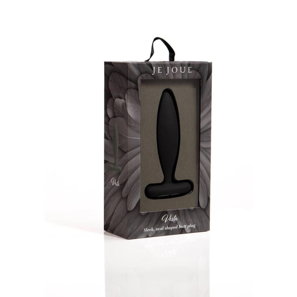 Je Joue's Vesta is the smallest of the new vibrating butt toy range, but it still packs a punch with the brand's pioneering deep rumbling vibrations. Enjoy the luxury your butt deserves with the silky smooth silicone.Before inserting Vesta, make sure you have prepared and cleaned the area, and have your lube to hand. Massage a droplet around your anus and a few more on the toy. You can either choose the vibration setting you like before inserting, use the remote while it's inside, or try without vibrations altogether for a different experience. To help ease of entry, gently push against Vesta's soft tapered tip. Once in, see how it feels and experiment stimulating other body parts noticing how your anus responds to the sensations.Welcome to your new hive of inner derierre delights. This is luxury in the form of a butt vibe.With Vesta, indulge in exquisite pleasure thanks to its adorable size and oval shape.Enjoy the deep rumbling vibrations, with 5 speeds and 7 patterns to choose from."Je Joue's pioneering motors are uniquely designed to vibrate at an ultra-low-frequency. This creates deep rumbling vibrations for powerful sensations to be felt through the body. Stimulating deep muscle tissue and awakening nerve endings, the vibrations can target multiple pleasure points building up to stronger and longer-lasting orgasmic release.The remote controlled Vesta is great for people with mobility issues and for couples play. It works with or without the wireless remote control which can be controlled up to 30 feet away, for all your playful and potentially dominating desires. While the remote is splashproof, just make sure you don't drop it in the bath!5 vibration speeds. 7 vibration patterns.Je Joue's products are all made with super silky-soft, medical-grade, 100% body-safe silicone. That means they are all pthalate-free, latex-free, non-porous and can be cleaned easily with soap and warm water. Seam-free for an ultra-smooth finish, extra comfort, and protects from bacteria to grow—making it extra sexy.Totally waterproof for all your wet play adventures—bath, shower, jacuzzi you name it. Can be used up to 1m underwater.Your Je Joue plug comes with a USB magnetic charger that will flash red when successfully connected to the silver-plated charging point on the toy. The rechargeable battery will run for one hour after one hour of charging time.Built in travel lock (because we care about your privacy). To avoid vibration accidents just hold down the + button for 3 secs to turn on your toy.No backdoor agreements here, our warranty is all about protecting your backdoor toys. Je Joue's 1 year protection covers againsts defects in materials and workmanship.Oval shape with sleek design for the ultimate comfortPetite oval vibrating butt plug60 mins charge for 90 mins play117mm62.5mm29.6 mm105 mm75.6 g