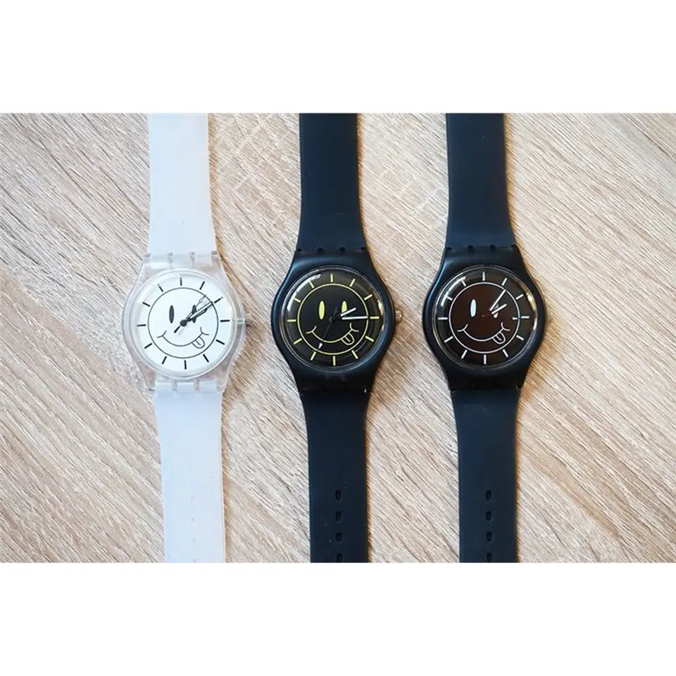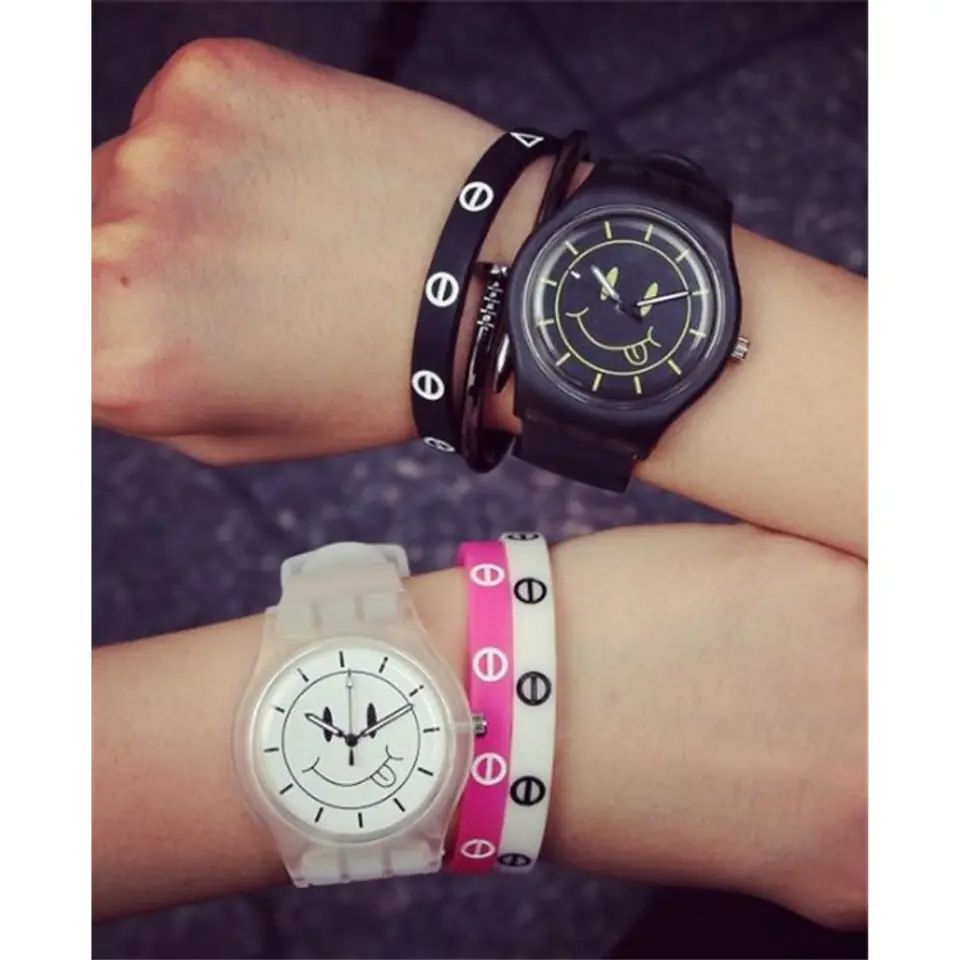 Unique "Smiley" watch Ideal for both women and men. It will be a beautiful complement to everyday clothing. Some important information about the watch: - watch with silicone strap - scratch-resistant mineral glass - the watch has a battery that can be replaced by any watchmaker! Watch dimensions: - case width 4 cm - bracelet circumference 21 cm maximum (minimana 16 cm) - bracelet width 2 cm