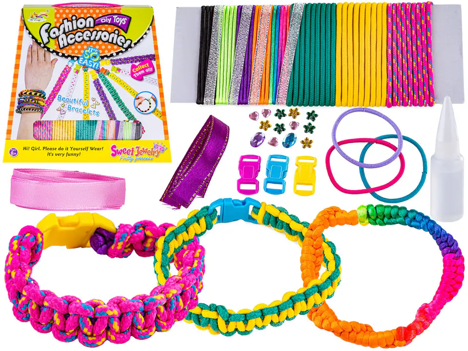 Jewelry creation set, bracelets, colorful strings + accessories