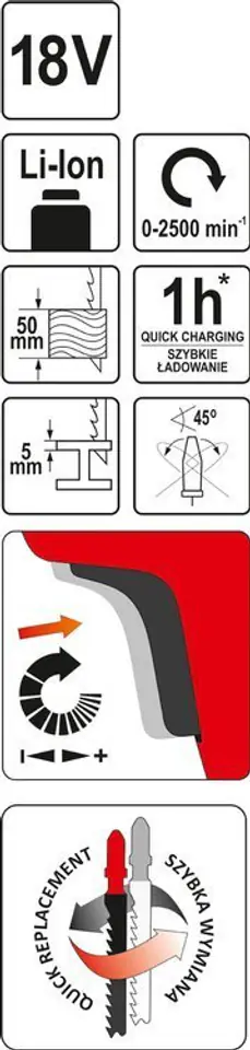 Designed for cutting boards, panels, chipboard and metal, sheet metal, PVC, chamber polycarbonate, plexiglass. Using appropriate saw blades, it allows you to cut circles and holes for the sink, kitchen faucets, etc. The compact size ensures free manoeuvring of the tool and excellent guidance on the designated line, also in hard-to-reach places.
