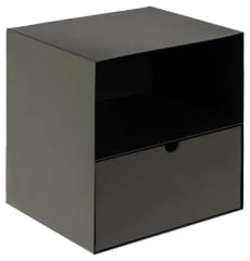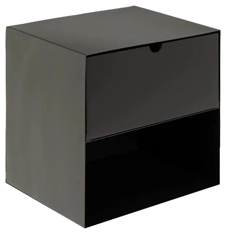 Joliet bedside table is a minimalist, modern piece of furniture for lovers of good style. The body is made of powder-coated metal and the drawer is made of durable bamboo. The cabinet provides the possibility of personalization - the drawer can be placed at the top or bottom. Halfway up the cabinet there is a metal shelf. Dimensions: 30x25x30 cm Weight: 5,2kg