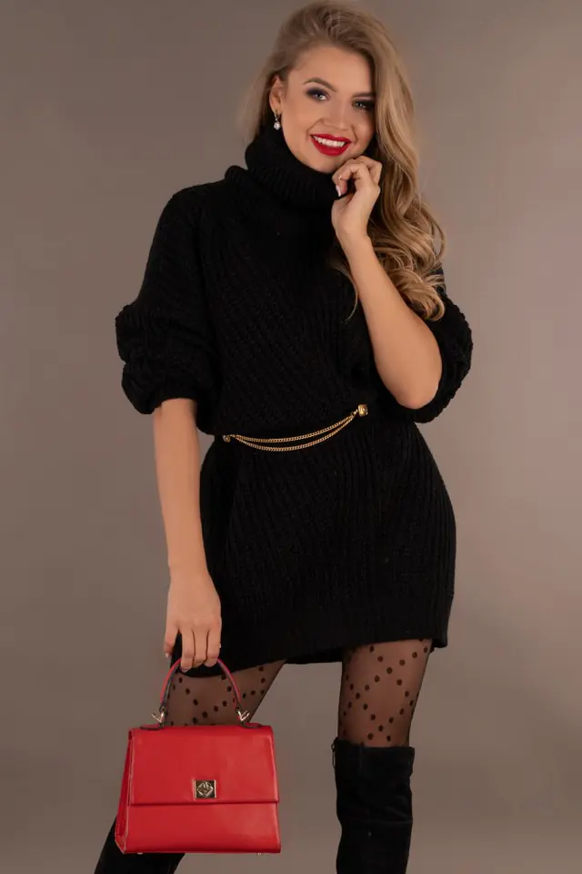 Oversizowy golf. Dłuższy krój sprawia, że można go traktować jak tunikę lub sukienkę.