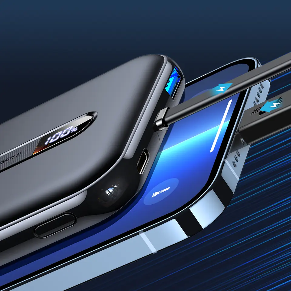 The device has up to 2 output sockets and a built-in Lightning cable. Thanks to this, you can charge e.g. smartphone, tablet and headphones at the same time! In addition, the powerbank supports many fast charging protocols, such as Power Delivery, Quick Charge 3.0 and others.