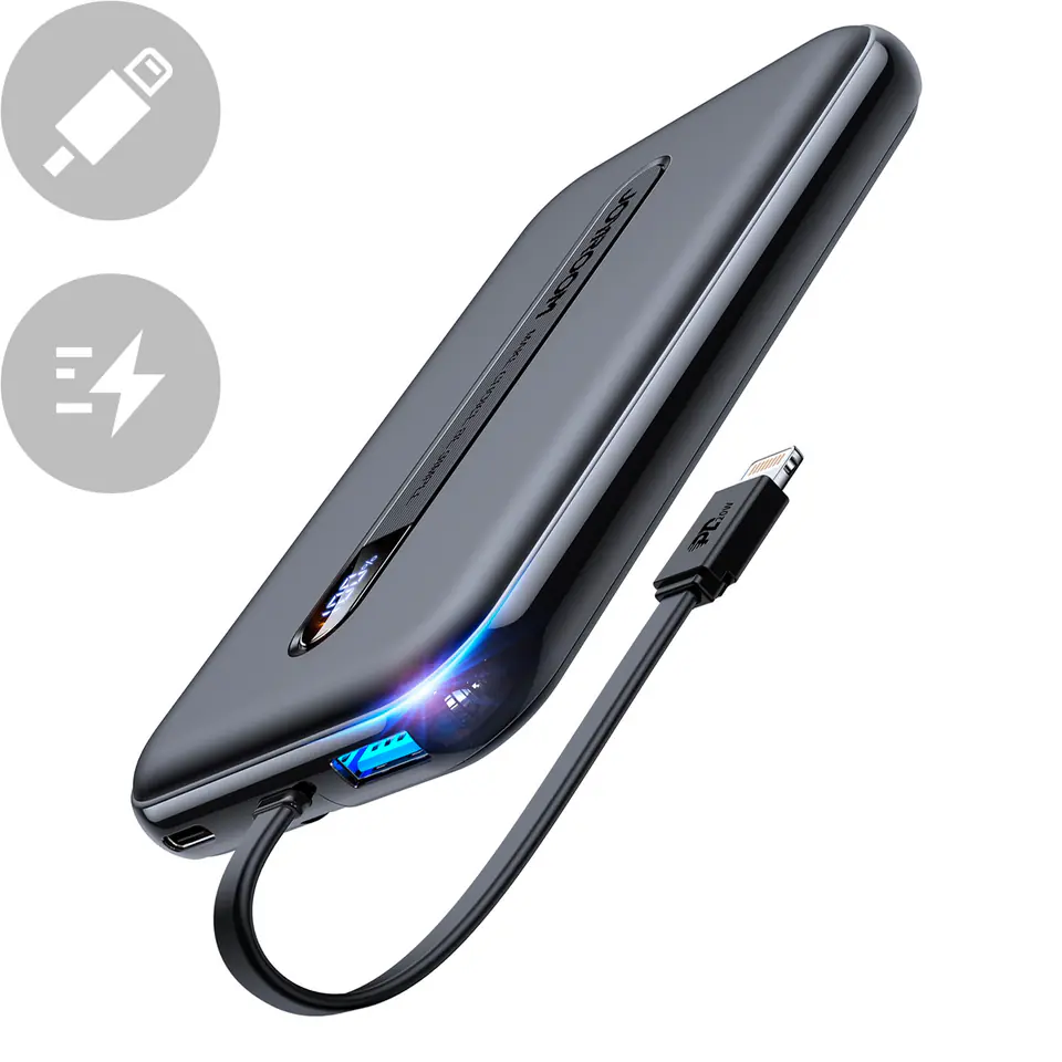 Joyroom powerbank with built-in Lightning cable 20W 10000mAh PD QC3.0 black (JR-L001-lightning)