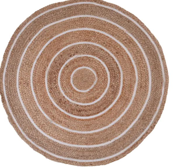 Round jute rug 90 cm braided Beautify your interior with an original hand-woven rug. The carpet is made of the highest quality jute, which is environmentally friendly and known for its ease of care. It will give your interior a cozy and natural character. Specification: jute material (stem fiber from plants of the jute genus), diameter: 90 cm