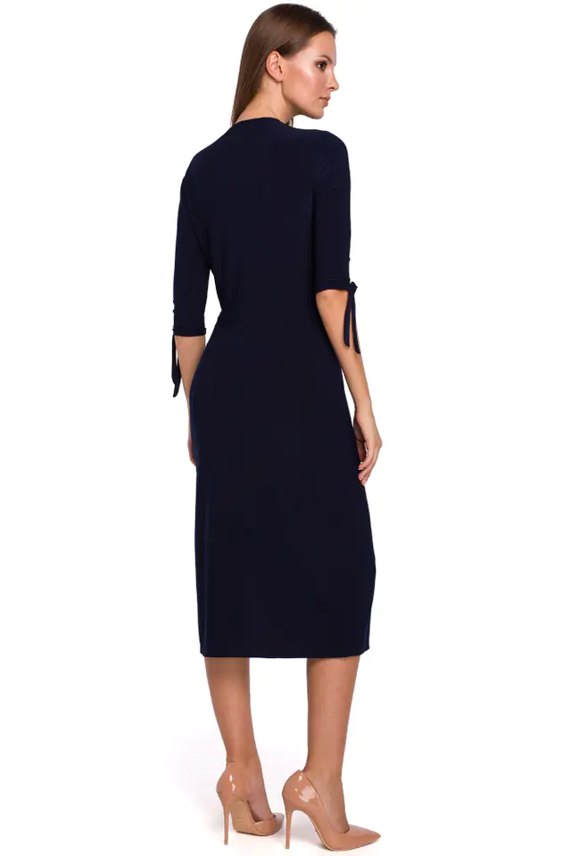 Ciekawa propozycja dla kobiet, które uwielbiają proste, dopasowane fasony. Dzięki elastycznej dzianinie i podkreślonej linii talii, pięknie formuje sylwetkę. Uroku dodają jej wiązania przy rękawach. Fason uniwersalny, który jest odpowiedni na wiele okazji!