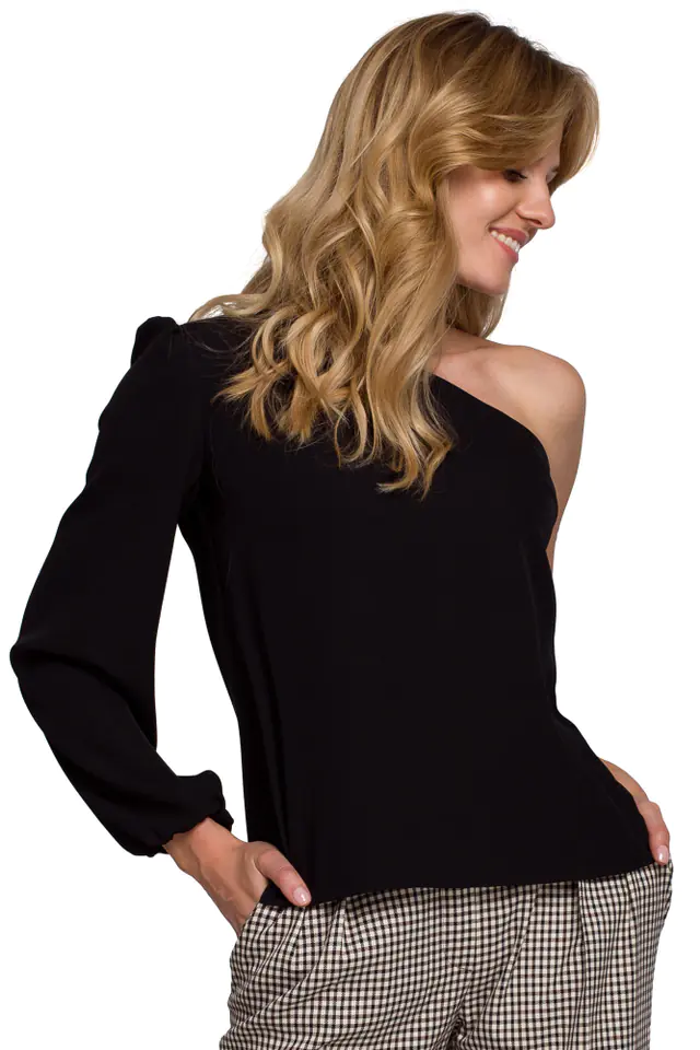 K080 Blouse for one shoulder - black Color: black, Size XL (42)