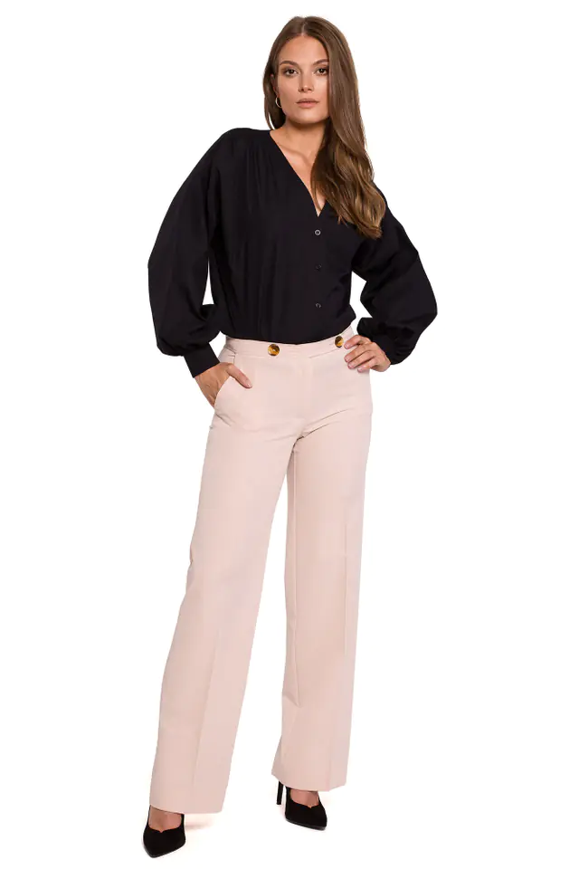 K114 Trousers with straight legs - beige Beige, size L (40)