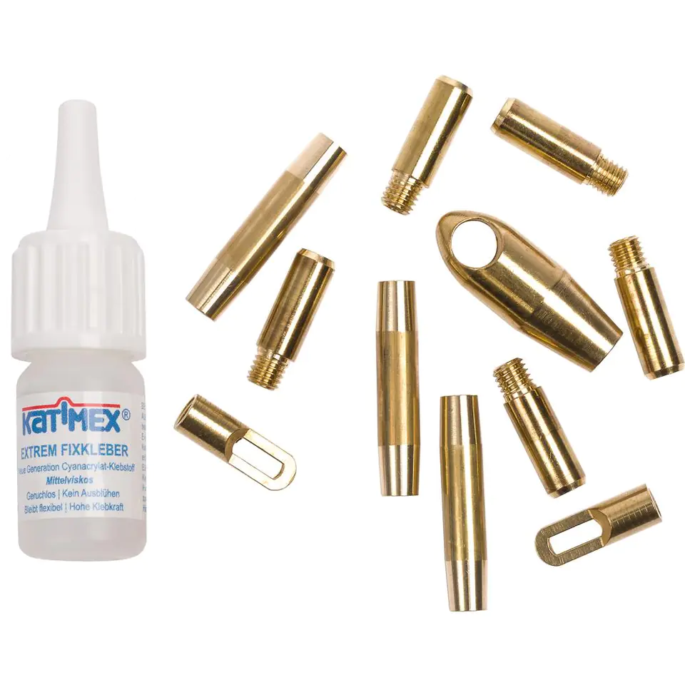 Belt repair kit consisting of 5 end sleeves, guide head with eyelet ∅ 11 mm, 3 connecting sleeves, special glue 3 g.