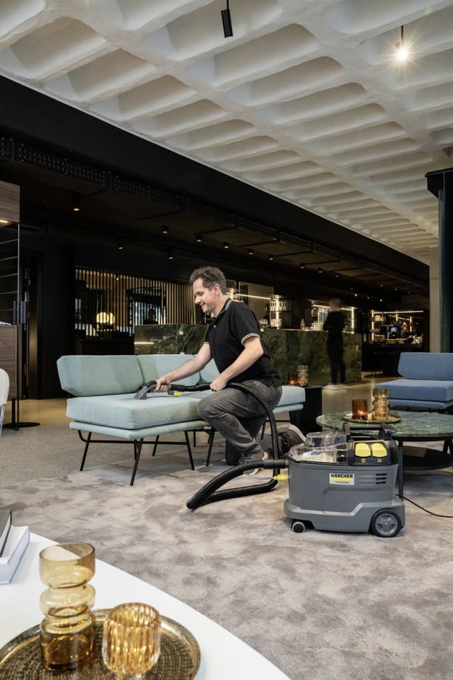 Perfect cleaning of textile surfaces. The surfaces to be cleaned dry quickly thanks to the excellent suction performance. Perfect cleaning result with visible before and after effect.