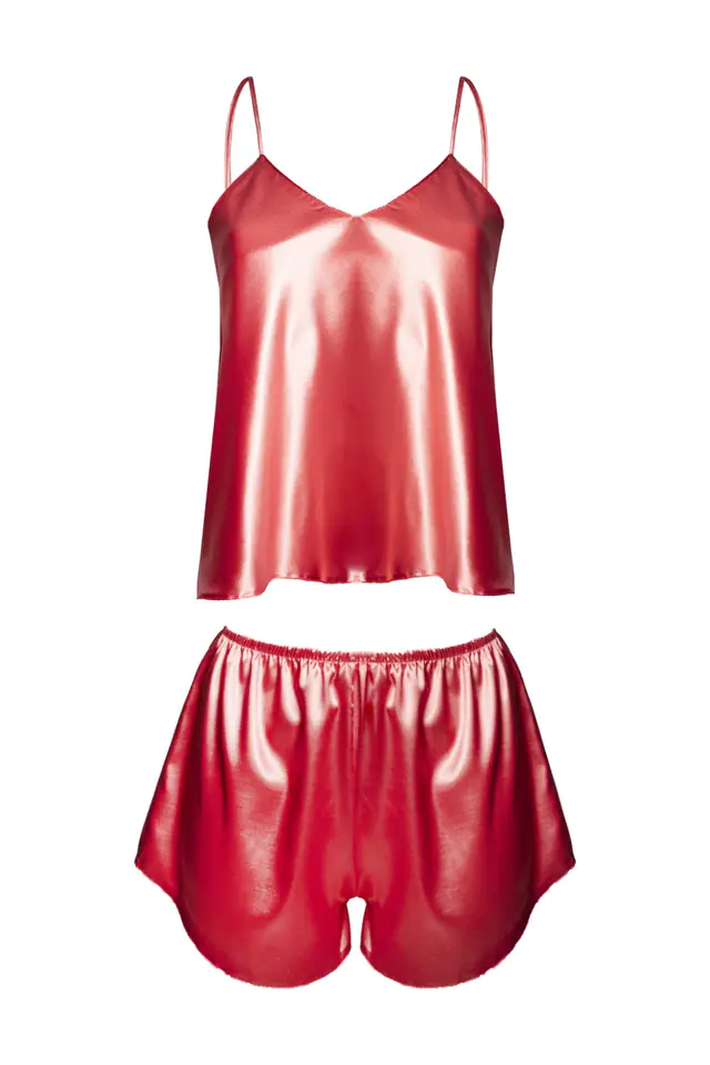 KOMPLET SKŁADA SIĘ Z KOSZULKI I SPODENEK PRZÓD KOSZULKI TWORZY DELIKATNY, TRÓJKĄTNY DEKOLT. RAMIĄCZKA CIENKIE, REGULOWANE. SPODENKI NA CIENKIEJ GUMCE, BARDZO WYGODNE W NOSZENIU.