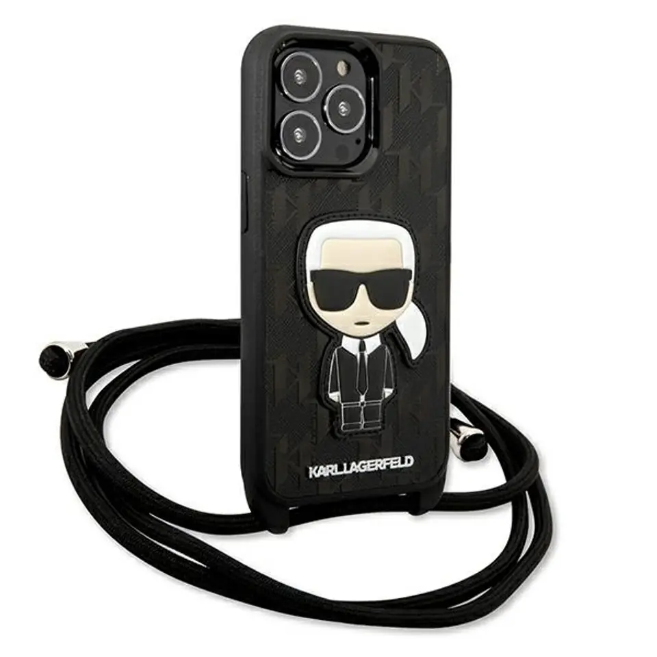 Karl Lagerfeld KLHCP13LCMNIPK iPhone 13 Pro / 13 6.1" hardcase black/black Leather Monogram Patch and Cord Iconik