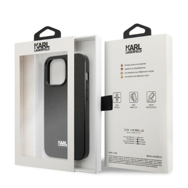 Karl Lagerfeld - Saffiano Plaque Collection is a unique series of covers with which you will look stylish and fashionable. The cases are made of high-quality eco saffiano leather and decorated with a metal logo of the legendary designer.