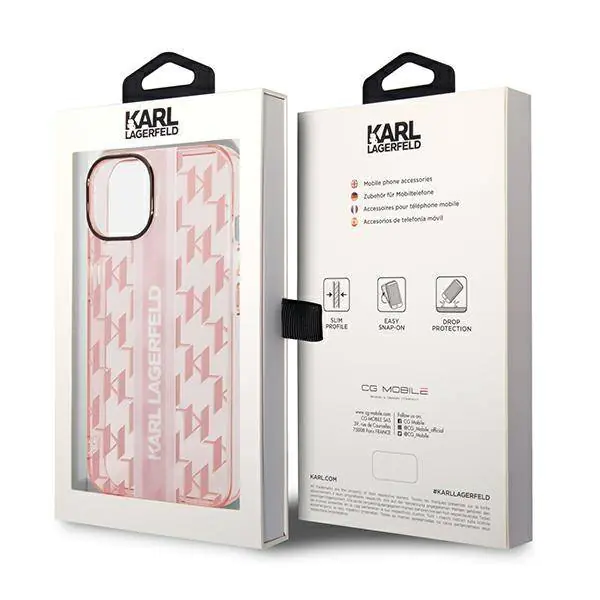 The case is designed as a unique alternative to ordinary mobile phone cases and also to give a unique, original look, like many high-end styles created by a valued artist. The transparent case has been covered with the initials of a well-known designer, in addition, the cover has a printed strap matching the color of the whole on which the white Karl Lagerfeld logo is placed.