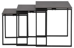The Katrine table socket is a unique item for people who value elegant simplicity. The set consists of three elements. Glass, smoked tops are combined with metal legs in matt black. A characteristic feature of the set is the way the glass plate merges with the base. This modern furniture for the living room is a harmonious composition, both if arranged jointly and separately. They can be easily used as a place for appetizers or drinks for guests.