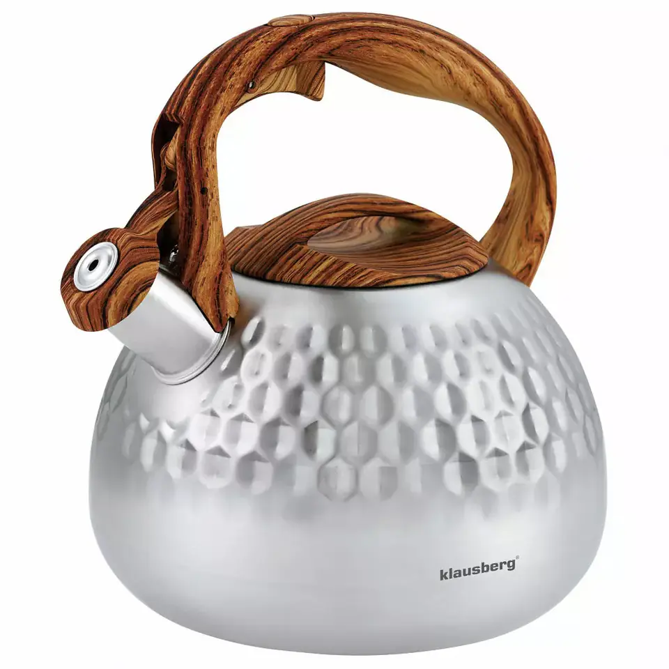 Modern kettle with a whistle with a removable lid. The kettle has been designed in such a way as to bring the boiled water to boiling point in the shortest possible time. Faster cooking saves energy, which also saves you money.