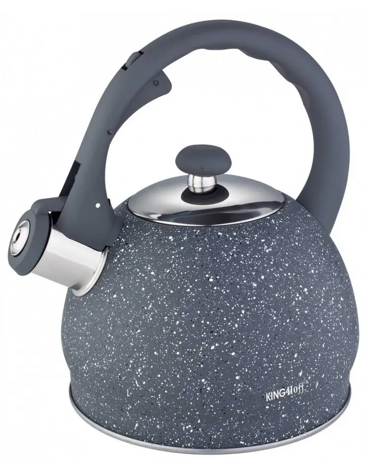 The kettle is made of stainless steel covered with a marble coating in gray,
