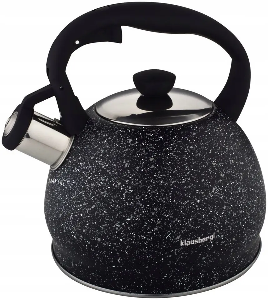 The kettle is made of stainless steel covered with a marble coating in black,