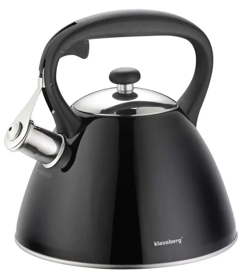 Steel kettle 3.0L made of high quality stainless steel INOX lacquered in black.