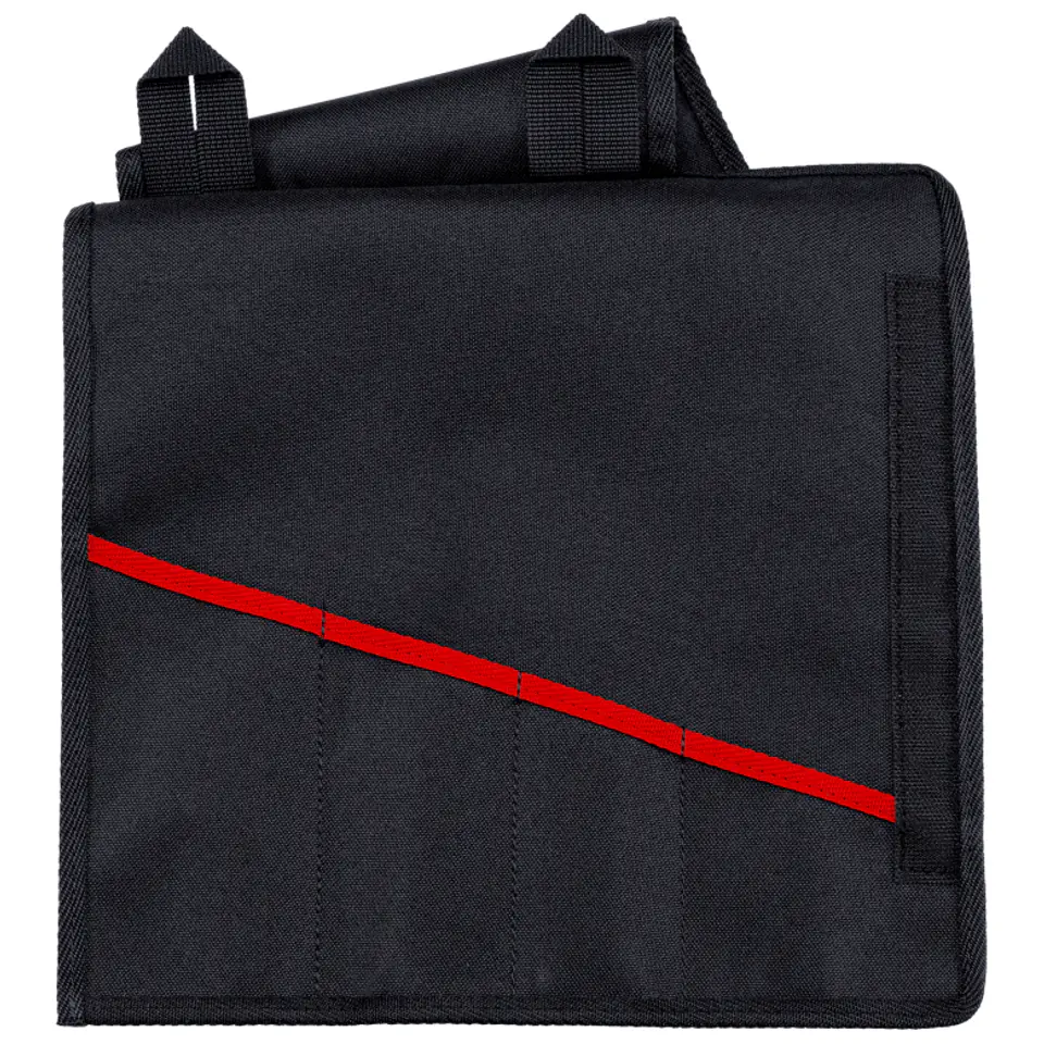 Removable tool wall with fifteen tool pockets on the bottom side and six tool pockets and a snap-in compartment (400 mm wide) on the cover side. Close with a button.