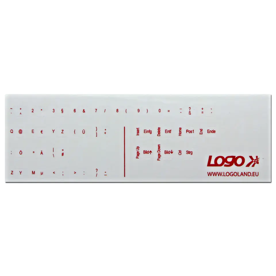 Stickers for keyboard or notebook keys. Red print, transparent, suitable for bright keyboards. You don't have a German keyboard and often type in this language? Do you translate? Constantly switching keyboards and looking for the right characters? We have a solution for you, stickers for keys! For example, to schools, for students of German studies. There is nothing easier than buying our set of German characters! http://en.wikipedia.org/wiki/Keyboard_layout