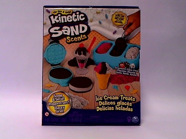 Kinetic Sand Scents, Ice Cream Treats Playset with 3 Colors of All-Natural Scented Play Sand and 6 Serving Tools, Sensory Toys for Kids Ages 3 and up