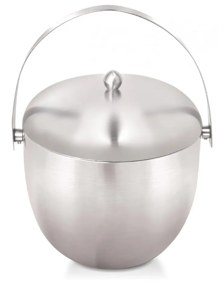 The ice bucket is made of high quality stainless steel. It is a vessel with a lid and a convenient, folding handle. Thanks to the double walls, it has thermal insulation properties to store ice longer and serve it to drinks and drinks at any time.
