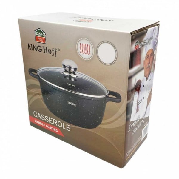 Cast low heat-resistant pot with marbled coating for healthy cooking.