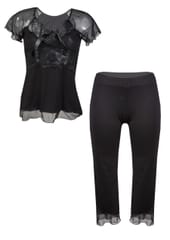 The Kinzly set will perfectly fit your figure, and its pleasant material will make you feel special. You can not pass by it indifferently, it makes an impression and draws attention. Kinzly consists of a blouse and trousers made of viscose. The blouse, in addition to the nice material, has beautiful lace and thin material that emphasizes its uniqueness. A large bow and a delicate frill at the bottom makes the blouse look interesting, and the short sleeve gives lightness. The pants are longer, smooth and at the ends of the legs have beautiful finishes made of thin material, which makes them look extraordinary. Do you want to feel elegant and special? Buy a set of Kinzly.