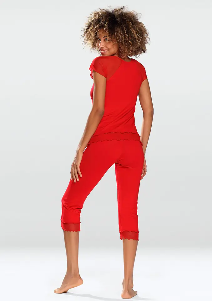 Piżama z wiskozy Kinzly krótki rękaw i spodnie 3/4