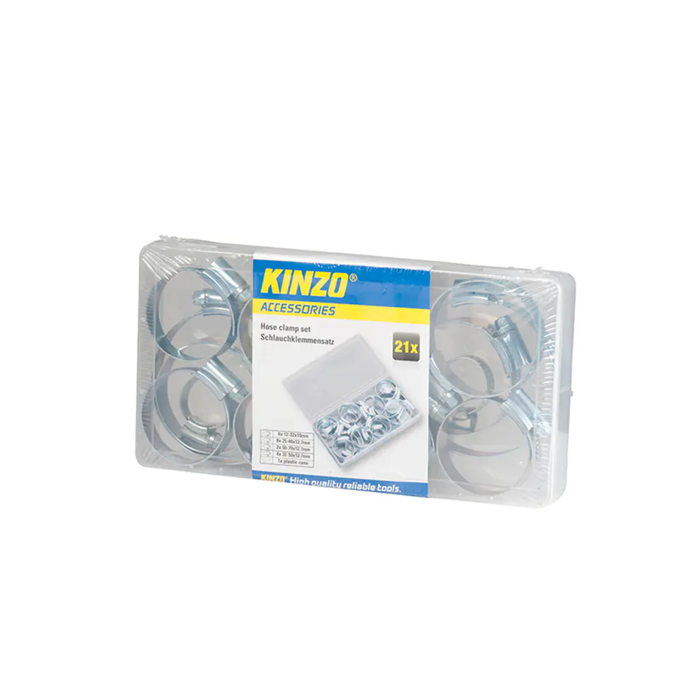21 partial set of 21 clamps in 4 sizes, packed in a plastic case.