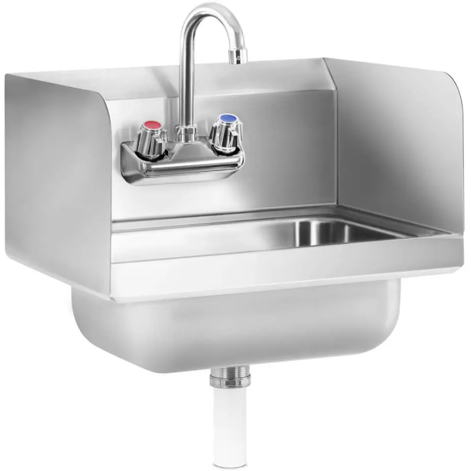 The professional hand sink has been specially designed for use in catering outlets, offices, shops and wherever high hygiene and ease of cleaning are necessary. The sink has high walls to prevent splashing water. High quality polished stainless steel makes cleaning easy and protects the washbasin from damage. Included is a high-quality, movable faucet with all the necessary elements. The washbasin is suitable for wall mounting.