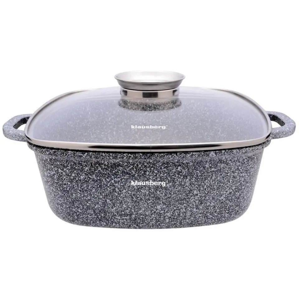 Cast, alumion square casserole with ceramic marbled coating for healthy cooking.
