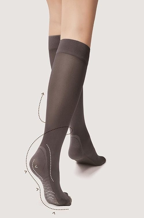 Novelty! Knee socks woven in an innovative way (Silver Fresh technology), with increased protection against the growth of bacteria and unpleasant odors. All this to make you feel fresh all day long. The perfect solution if you live in constant motion. Here, in addition, with the effect of foot massage. Pressure-free puller. It's worth having them. Thickness 40DEN. Composition: 80% polyamide, 20% elastane.
