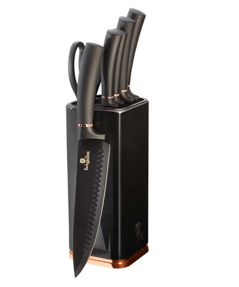 A set of knives on a stand of 6 elements from berlinger HAUS from the Black Rose Collectione series.