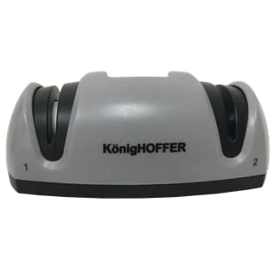 Knife sharpener on suction cup Wendy grey Könighoffer The two-stage knife sharpening mechanism is one of the most important advantages of the KönigHOFFER Wendy sharpener. It is based on two stages of work – in the first you give the right shape and angle of the cutting edge, while in the second one it is aligned and smoothed. The sharpening system of the KönigHOFFER Wendy (in grey) is based on two types of blades – diamond and ceramic. This solution has a direct impact on: - the quality of the obtained effects (precision comparable to laser sharpening), - comfort of use (results can be easily achieved even in the case of very neglected blades), - universality of the product (knife sharpener can not be used only for ceramic knives). The functionality of the Wendy diamond sharpener is also influenced by elements such as the suction cup (to ensure the stability of the product during sharpening and protection against cuts) and the sharpening system, which places the blade at the right angle. It can be said with certainty that this product is an elegant solution for every user who wants to professionally take care of their set of knives. The sharpener allows for comfortable use by right-handed and left-handed consumers. Technical Specification: Height (cm) 4.5 Length (cm) 11 Width (cm) 5.1 Material plastic Color black,grey Attributes recommended hand washing