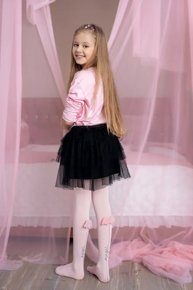 Dziewczęce rajstopy wzorzyste wykonane z mikrofibry z doszytą aplikacją w postaci skrzydeł. Skład surowcowy:Poliamid 89 %, Elastan 11 %.