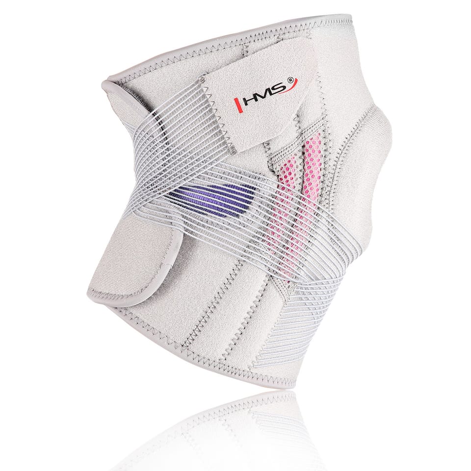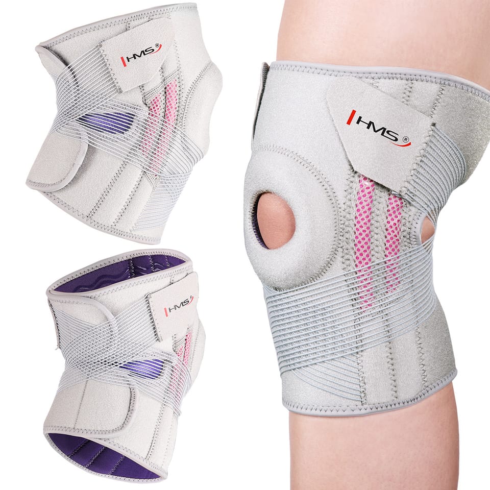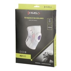 KO1505 HMS Knee puller. It will be used for dysfunctions of the knee area musculoskeletal apparatus requiring relative immobilization. By increasing the stabilization of the joint, it can also be helpful in pain states. The product is light, soft and comfortable, does not cause discomfort even during all-day wear. The puller is made of high quality materials that guarantee high comfort of use. KO1505 has Velcro fasteners and additional rubber stabilizing the kneecap. Its anatomical profile perfectly adapts to the shape of the body. Thanks to the use of only soft elements, the welt can be used during sports. Specification: Material: Nylon, spandex, polyester, styrol and rubber Color: grey with pink elements Dimensions: length: 49/45cm width: 25 cmCircumference: 34-48 cmExtensibility: 5% Size: universal Notes: Not intended for commercial use Warranty 24 months Certificates, standards: CE