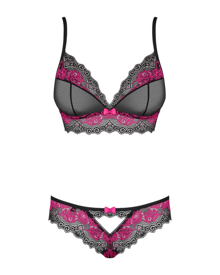 Transparentna siateczka połączona z koronką pięknie układa się na skórze, otulając ją miękkością i zmysłowym wzorem. Miękkie miseczki są subtelnie przejrzyste, co dodaje pikanterii, a regulowane ramiączka i kilkustopniowe zapięcie pozwalają dopasować biustonosz idealnie do Twoich kształtów. Różowe detale przyciągają wzrok i delikatnie podkreślają linię ciała.