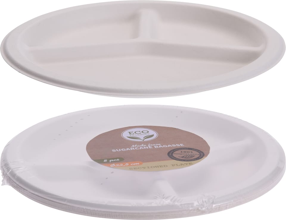 KPL.8 TRAYS 22,5CM BIODEGRADABLE 3-DIVISIBLE