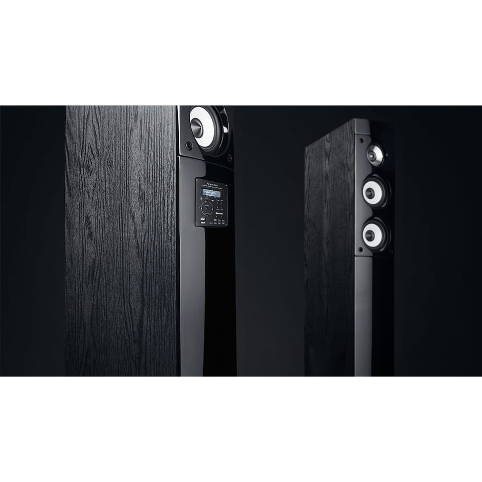 The set consists of two 3-way speakers with an output power of 2x 60 W. On the front of each of them there are two 4-inch midrange speakers and a 1-inch tweeter with a neodymium magnet and a diaphragm made of high-quality silk. The whole is complemented by an 8-inch bass speaker for exceptionally deep sound. The fact that it was placed on the side of the column makes it slim.