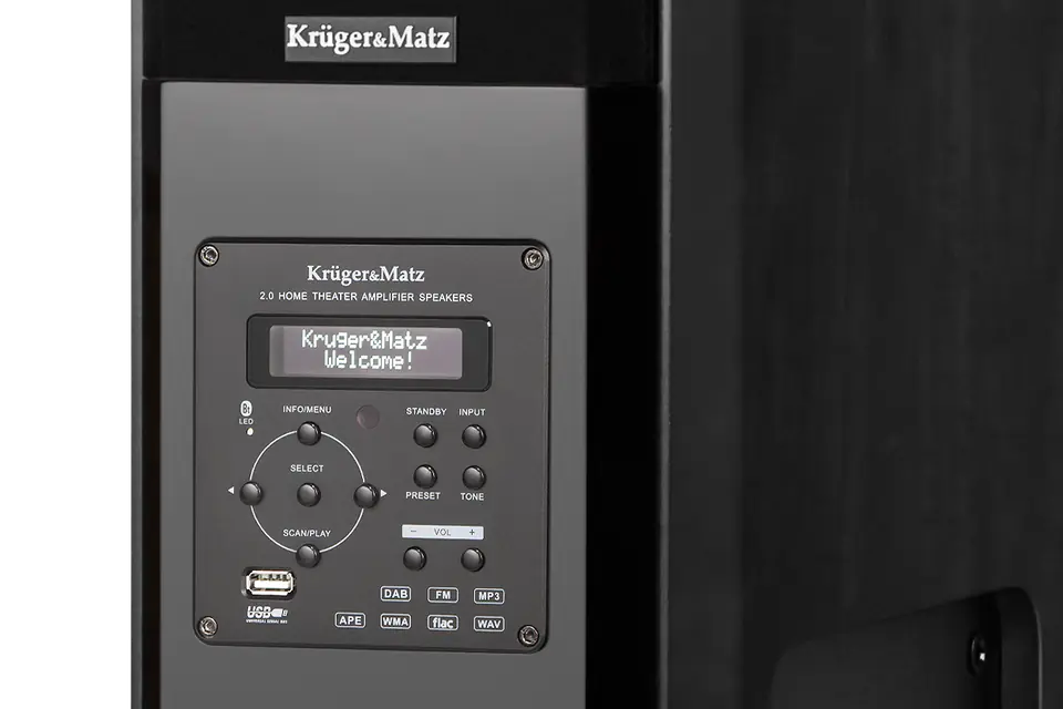 Two 3-way floor speakers with an output power of 2x 80 W guarantee a deep and balanced sound, thus providing an unforgettable experience. On the front of each speaker there are two 5-inch midrange speakers and a tweeter with a neodymium magnet and a diaphragm made of high quality silk. On the side there is an 8-inch subwoofer that provides strong reproduction of the lowest frequencies, which results in high dynamics of strong bass sounds.