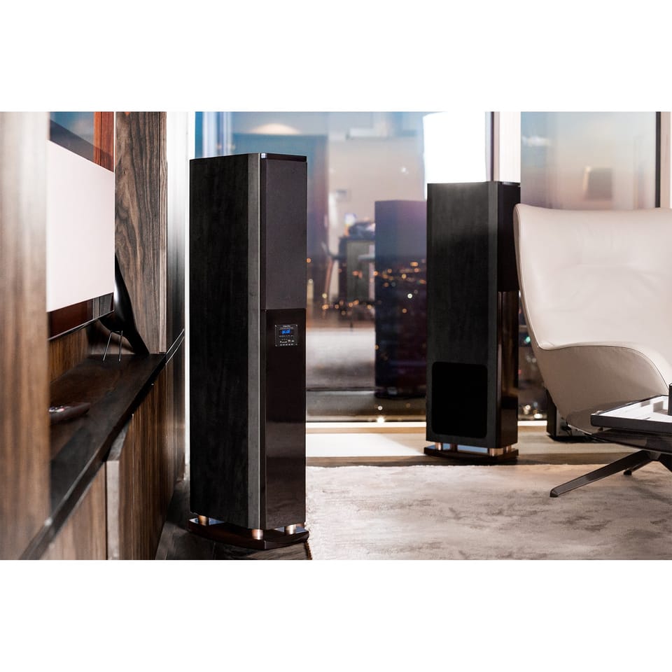 The Passion column set has a wide range of possibilities. Equipped with a USB port, SD card reader and two RCA inputs , the device allows you to directly play audio content from portable media players. Those who keep their entire digital music library on their phone will appreciate the ability to quickly pair their smartphone using Bluetooth connectivity. An interesting option is also the ability to receive radio stations, thanks to FM radio and DAB+ digital radio. Active Passion loudspeakers are not only high sound quality, but also an unprecedented design in this type of sets. Wood veneered columns in black blend perfectly with any interior.